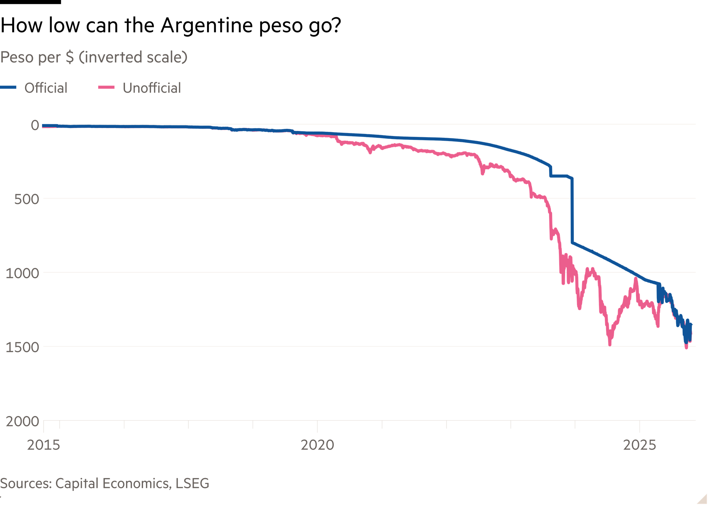 Look at it from Argentina’s perspective. Over the past two weeks, the US has committed to a $20bn currency swap line with the Argentine central bank, intervened directly on at least two occasions to buy Argentine pesos in the spot market and announced plans to line up another $20bn package to help with the country’s upcoming debt payments. Yet the peso fell to a new intraday low of 1,476 per dollar on Monday. That compares with 350 pesos per dollar two years ago.